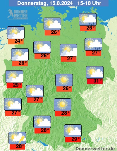 Die Temperaturen erreichen Höchstwerte um 24 Grad an der Nordseeküste und um 31 Grad in der Lausitz.