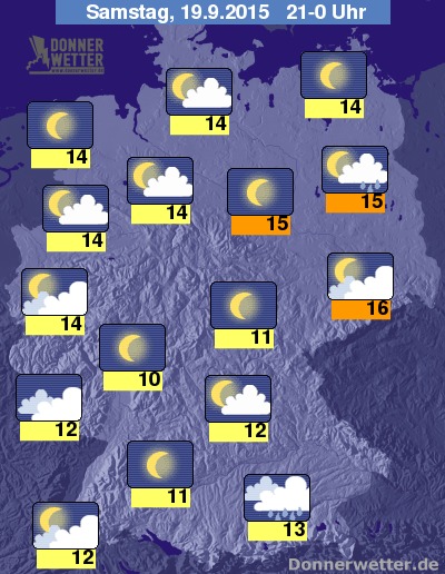 Heute Abend halten sich vor allem über dem Südosten der Republik dichte Wolken aus denen es häufig regnet, aber auch über Ostdeutschland ziehen gebietsweise dichte Wolken durch, die hier und da für Schauer sorgen können. Sonst ist es jedoch meist locker bewölkt oder auch sternenklar und es bleibt trocken. Die Abendtemperatur liegt bei 16 Grad in Leipzig und etwa 10 Grad am Westerwald.