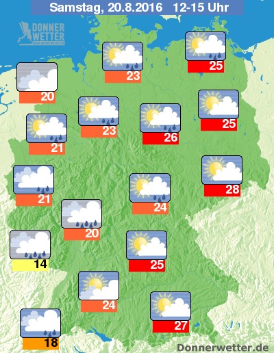 Heute Nachmittag ziehen oft dichte Wolken durch, hier und da ist es aber auch mal aufgelockert bewölkt. Es bilden sich wiederholt, zum Teil auch kräftige Schauer, regional sind auch einzelne Gewitter möglich. Im äußeren Westen heitert es im weiteren Verlauf auf und es bleibt dann meist trocken. Die Temperatur steigt auf teils nur 14 Grad am Pfälzer Wald und bis 28 Grad in der Lausitz.