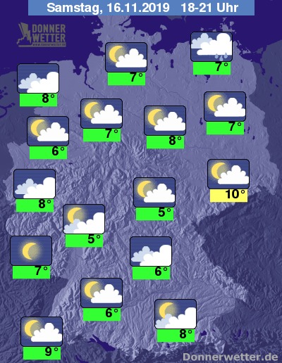Heute Abend ist es im Norden noch gebietsweise bedeckt bei einigen Tropfen, sonst ist der Himmel verbreitet locker bis wechselnd, hier und da auch stark bewölkt, dazu bleibt es trocken. Die Temperatur liegt bei 5 Grad im Eichsfeld und bis 10 Grad in der Lausitz.