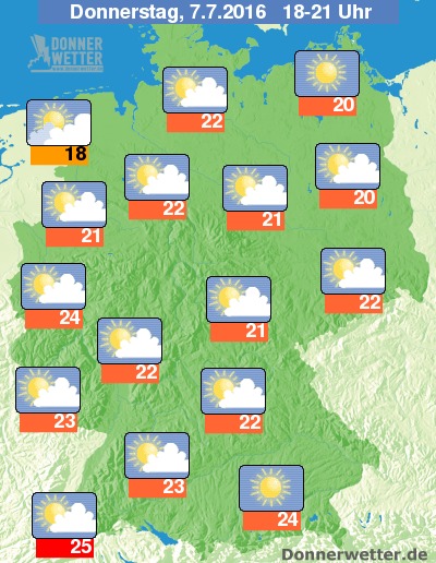 Der Halbfinal-Donnerstag trumpft mit besten Public-Viewing-Bedingungen auf: Sonne und Wolken wechseln sich ab, die Temperaturen bleiben bei Werten um 18 bis 25 Grad angenehm, Schauer bilden eher die Ausnahme. Kurzum: DAS ist Gewinner-Wetter!
