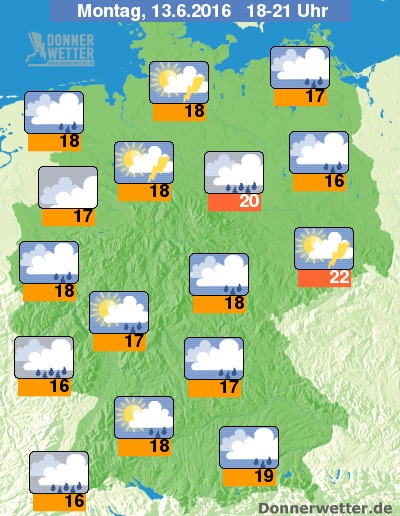 Heute Nachmittag hält sich überwiegend starke Bewölkung, hin und wieder kann aber auch die Sonne zum Vorschein kommen. Es bilden sich jedoch wiederholt Schauer und auch örtliche Gewitter. Die Temperatur steigt auf 15 Grad am Teutoburger Wald und bis 22 Grad in Dresden.