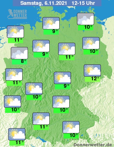 Heute Nachmittag zeigt sich die Südhälfte des Landes häufig heiter bis sonnig, sonst ist es aber meist stark bewölkt oder trüb, hier und da können sich aber auch Auflockerungen zeigen. An den Küsten sind einzelne Schauer möglich, sonst bleibt es trocken. Die Temperatur liegt bei 8 Grad im Münsterland und bis 12 Grad in der Lausitz.
