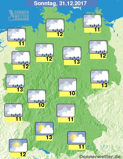 Am Sonntag kann sich im Süden häufig die Sonne zeigen, dabei bleibt es hier trocken. Im übrigen Bundesgebiet ziehen dichte Wolken und teils kräftiger Regen durch. Die Temperatur steigt auf 10 bis 13 Grad. Im Norden und Westen weht ein teils stürmischer Wind. An Nord- und Ostsee herrscht teils schwerer Sturm.