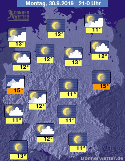 Später am Abend klart es im Südosten weiter auf. Im restlichen Land bleibt der Himmel überwiegend leicht bewölkt. Die Temperaturen sinken auf 15 Grad in Köln und 11 Grad an der Ostsee.