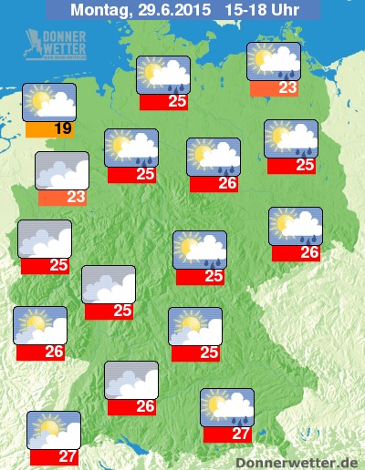Heute Nachmittag können sich über der Nordosthälfte von Deutschland bei wechselnder bis starker Bewölkung zeitweise Schauer und auch einzelne Gewitter entwickeln. Auch im Alpenvorland sind gebietsweise Schauer und Gewitter möglich. Im übrigen Bundesgebiet ist es teils aufgelockert, teils stark bewölkt, aber dazu weitgehend trocken. Die Temperatur liegt bei 19 Grad an der Nordsee und bis 27 Grad in München.