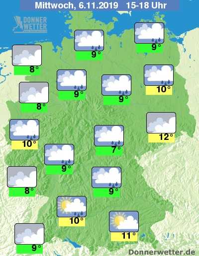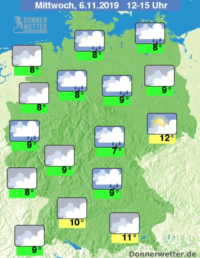 Die Temperaturen bewegen sich zwischen 7 Grad in den Mittelgebirgen und 12 Grad, dort wo sich die Sonne etwas häufiger blicken lässt.