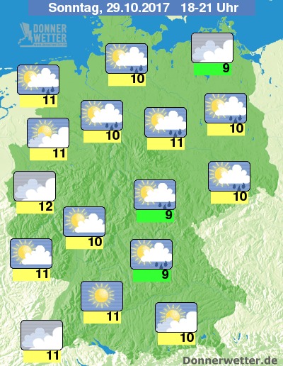Heute Nachmittag halten sich über dem Norden, dem Osten und dem Süden mehrheitlich dichte Wolken, die hier zum Teil kräftige Regenschauer bringen. Im übrigen Bundesgebiet ist es teils aufgelockert, teils stark bewölkt, dazu sind ebenfalls hier und da kräftige Schauer möglich. Die Temperatur liegt nur bei 9 bis 12 Grad. Der Wind weht anfangs noch oft frisch bis stark, lässt jedoch langsam nach. An den Küsten bleibt es zunächst verbreitet stürmisch.