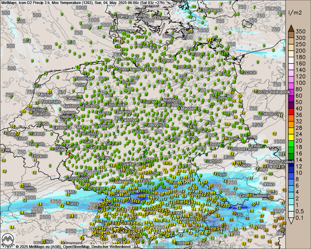 Am Sonntag zeigt sich der Himmel über dem Süden stark bewölkt, dabei fällt teils schauerartiger Regen; auch lokale Gewitter können nicht ausgeschlossen werden. Am Alpenrand fällt auch anhaltender Regen. In den übrigen Landesteilen ist es verbreitet wechselnd bewölkt, vor allem im Norden sind auch auch einzelne Schauer möglich.