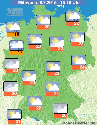 Heute Nachmittag ziehen über die Nordwesthälfte des Landes sowie im Ostseeumfeld oft dichte Wolken und es können sich Schauer, vor allem in Küstennähe auch einzelne Gewitter entwickeln. Im übrigen Bundesgebiet ist es meist locker bis wechselnd bewölkt und dazu weitgehend trocken. Im äußeren Südosten Deutschlands fällt bei dichten Wolken zeitweise Regen. Die Temperatur steigt nur noch auf 17 Grad am Niederrhein und bis etwa 24 Grad in Niederschlesien.