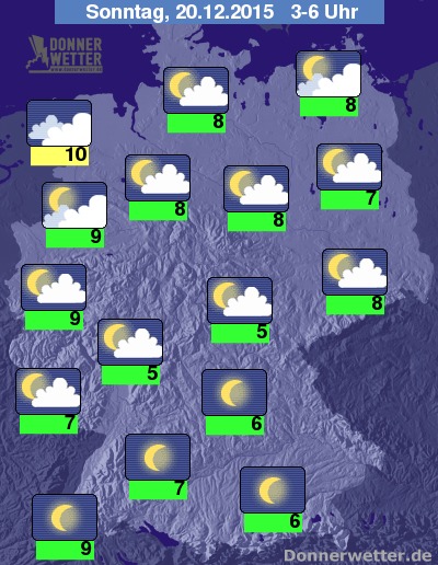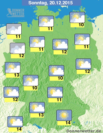 Am Sonntag zieht über das Bundesgebiet meist lockere bis aufgelockerte Bewölkung durch. Im Süden Deutschland ist es auch oft sonnig. Dagegen werden die Wolken im Norden und Nordwesten im Tagesverlauf insgesamt dichter, Regen ist aber auch hier nicht zu erwarten. Die Temperatur steigt auf 10 Grad an der Müritz und bis 14 Grad im Oberrheingraben. An der Nordsee weht zunehmend starker und auch stürmischer Wind.