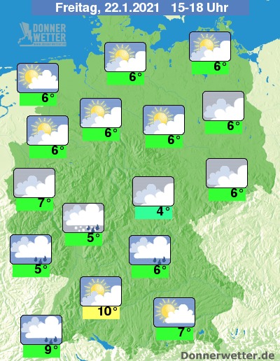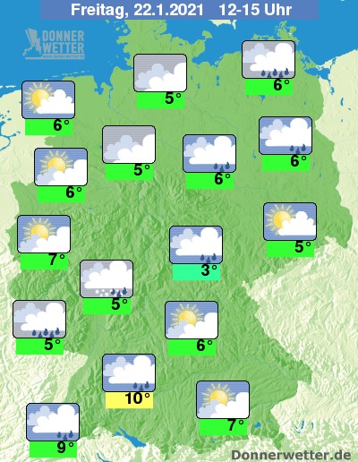 Die Temperaturen bewegen sich zwischen 3 Grad in Thüringen und 10 Grad in Schwaben.