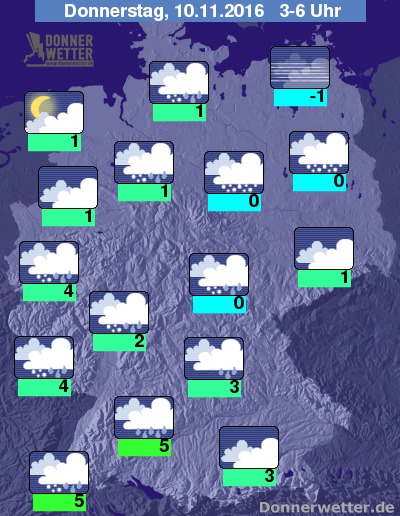 Die Höchsttemperatur liegt um 5 Grad C im Schwarzwald und minus 1 Grad C im Münsterland.