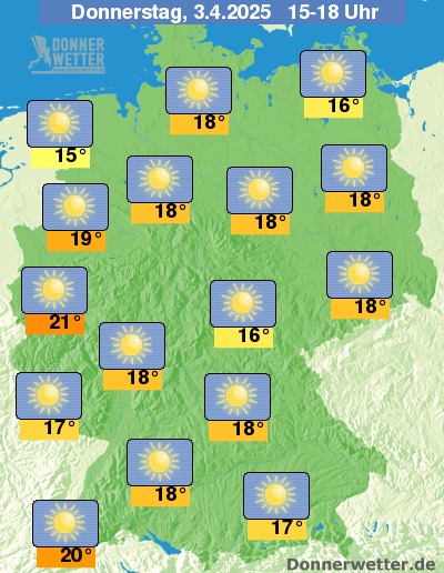 Temperaturen am Nachmittag um 15 bis 21 Grad.