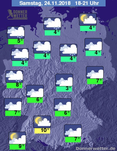 Heute Abend bleibt es über der Südhälfte bei teils stark, teils aber auch aufgelockertem Himmel weitgehend trocken, dagegen bringen dichte Wolken von NRW, über Niedersachsen bis nach Sachsen-Anhalt zeitweiligen Regen. Über der übrigen Nordhälfte ist es zwar ebenfalls meist stark bewölkt, allerdings auch weitgehend trocken. Die Temperatur liegt bei 3 bis 10 Grad.