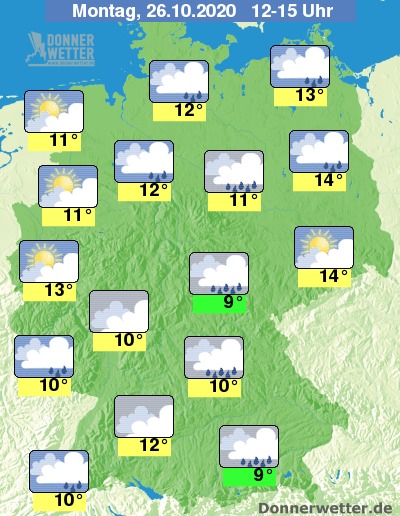 In den Nachmittagstunden bleibt der Himmel über weiten Landesteilen bedeckt oder es ist stark bewölkt. Auflockerungen beschränken sich in den kommenden Stunden vor allem auf den äußersten Westen und Nordwesten sowie Teile Sachsens. Vor allem in den früheren Nachmittagsstunden muss verbreitet mit Schauern gerechnet werden, im Osten und Südosten kann es zeitweise auch kräftiger regnen.