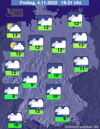 Heute Abend bleibt es bei den weitgehend dichten Wolken und lediglich vom Niederrhein bis zur Nordsee ist es auch oft locker bis aufgelockert bewölkt. Im Süden und Osten fällt gebietsweise Regen, während es sonst größtenteils trocken bleibt, nur vereinzelt bildet sich Schauer. Die Temperatur liegt bei 8 Grad am Pfälzer Wald und bis 13 Grad in Berlin.