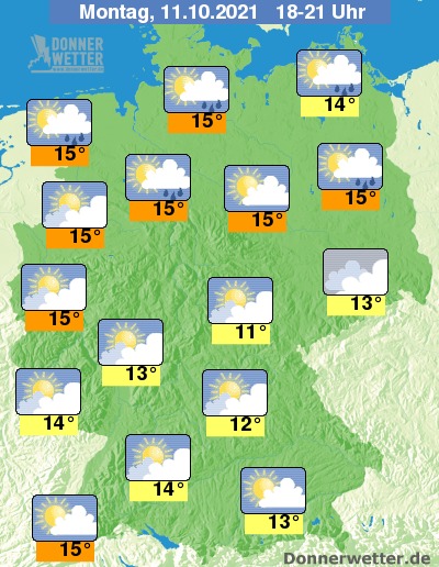 Heute Abend ist es über der Südwesthälfte des Landes meist stark, teils auch aufgelockert bewölkt und es bleibt weitgehend trocken. Weiter nach Norden und Osten hin ist es häufig heiter, jedoch können auch dichte Wolken durchziehen, dabei ist mit einzelnen Schauern zu rechnen. Die Temperatur liegt bei 11 Grad im Grabfeld und bis 15 Grad im Norddeutschen Tiefland.