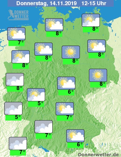 Am frühen Nachmittag gibt es vor allem nach Osten hin größere Aufheiterungen und längere sonnige Abschnitte. Sonst gibt es eine Mischung aus Sonne und Wolken. Im Südwesten und Westen sind die Wolken dichter und an der Grenze zu Frankreich kann es stellenweise etwas tröpfeln.