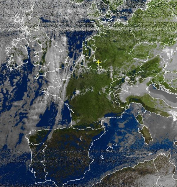 Auf dem Satellitenfoto von heute Morgen sind verbreitet dichte Wolken über den Britischen Inseln, sowie über dem Nordwesten Frankreichs zu erkennen. Sie gehören zum Tief "Thompson" mit Schwerpunkt westlich von Irland und bringen wechselhaftes und kühles Schauerwetter in diese Regionen Europas. Der mit Abstand größte Teil Europas liegt jedoch unter Hochdruckeinfluss mit vielfach sonnigem und warmem bis heißen Sommerwetter.