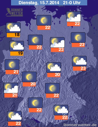Heute Abend ziehen vom bayerischen Alpenrand bis zum Bayerischen Wald noch teils dichte Wolken durch, die für den ein oder anderen Schauer oder auch ein Gewitter sorgen können. Sonst ist es deutschlandweit aber aufgelockert bewölkt oder der Himmel zeigt sich sternenklar und es bleibt trocken. Die Abendwerte liegen bei 23 Grad in Berlin und 18 Grad an der Ems.