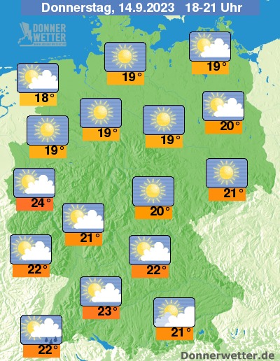 Heute Abend ist es im Süden teils stark, teils aufgelockert bewölkt und letzte Schauer am Alpenrand werden immer seltener, sonst bleibt es schon trocken. Nördlich des Mains ist es verbreitet sonnig oder nur leicht bewölkt, dazu bleibt es trocken. Die Temperatur liegt bei 18 Grad in Wilhelmshaven und bei 23 Grad in Stuttgart.