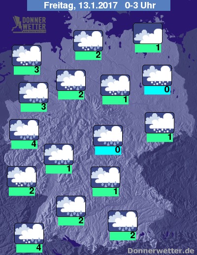Am Freitag halten die Schneefälle weiter an. Nur in Nordseenähe fällt Regen. Die Sonne zeigt sich höchstens in kurzen Unterbrechungen. Zudem bleibt es landesweit stürmisch. Die Höchstwerte liegen zwischen 0 und 6 Grad.