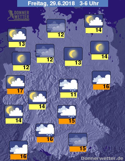 Im Verlauf der Nacht lassen die Regenfälle dann langsam nach und am frühen Morgen tröpfelt es im Südosten nur noch vereinzelt, stellenweise bildet sich Nebel. Im Norden und Westen ist der Himmel hingegen weitgehend klar oder nur leicht bewölkt.