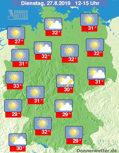 Die Temperaturen erreichen am Nachmittag Höchstwerte um 28 Grad an der Nordseeküste und heiße 35 Grad in Köln.