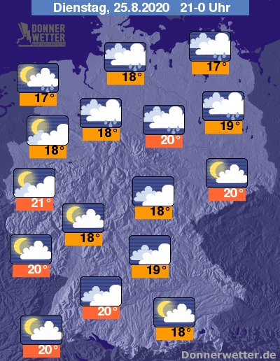 Die Temperaturen gehen bis zu den späten Abendstunden auf Werte um 21 bis 17 Grad zurück.