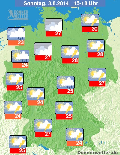 Zeitweise kann sich aber auch die Sonne zeigen, allerdings mehr im Nordwesten und Westen. Die Temperatur liegt bei 23 Grad in Meppen und schwülheißen 30 Grad in Neubrandenburg.