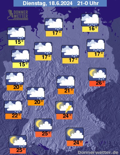 Die Temperaturen gehen in den frühen Morgenstunden zurück auf Werte um 18 Grad am Oberrhein und 12 Grad im Emsland.