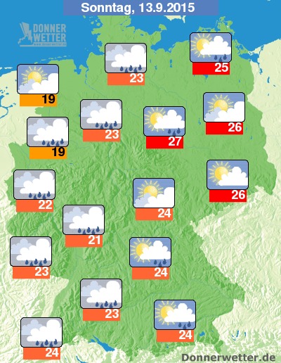 Heute ist es im Süden und Osten oft aufgelockert, teils auch stark bewölkt, aber größtenteils trocken. Im großen Rest der Republik ziehen hingegen meist dichte Wolken durch und Auflockerungen sind eher selten, dazu fällt immer wieder, teils kräftiger Regen, örtlich sind zudem Gewitter möglich. Die Temperatur steigt auf 19 Grad im Emsland und auf sommerlich warme 27 Grad in Magdeburg.