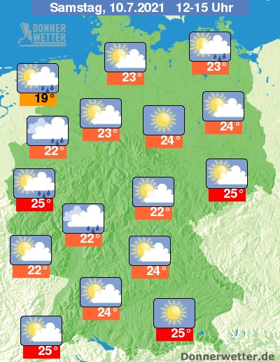 Heute Nachmittag ist es vor allem über der Osthälfte der Republik oft heiter bis sonnig und trocken. Weiter nach Westen hin ist es teils locker, gebietsweise ist es hier aber auch stark bewölkt, es können sich einzelne Schauer, seltener auch Gewitter bilden. Die Temperatur liegt bei 19 Grad an der Nordsee und bis 25 Grad am Oberrhein.