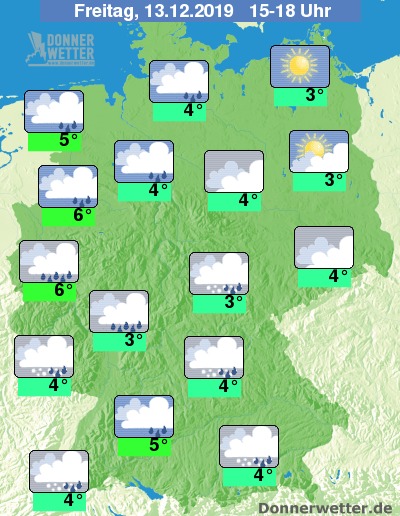 Im übrigen Land beherrschen kompakte, graue Schichtwolken für Vorherrschaft beim Wetter. Häufig kommt es dabei zu Niederschlägen, welche zum Teil bis in tiefere Lagen mit Schnee vermischt sein kann. Im Bergland schneit es zunächst ziemlich kräftig und es kann glatt werden.