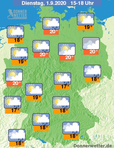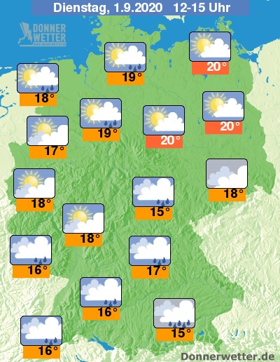 Am frühen Nachmittag scheint vom Rhein-Main-Gebiet bis an die Ems, sowie in den Gebieten nordöstlich der Elbe zeitweise die Sonne und es bleibt in der Regel niederschlagsfrei. In den anderen Gebieten fällt aus kompakteren Wolken gelegentlich Regen oder es gehen örtliche Schauer nieder, vereinzelt auch von Blitz und Donner begleitet.