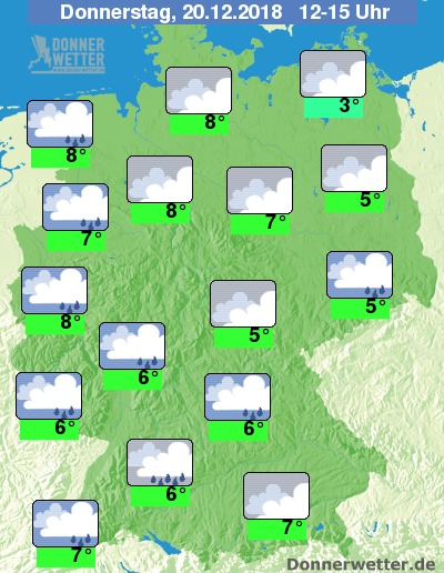 Am frühen Nachmittag beherrschen die Wolken die Macht auf der Wetterbühne und vor allem im Süden und Westen fällt gelegentlich Regen oder Sprühregen. Sonst bleibt es bis auf wenige Ausnahmen trocken, Aufhellungen gibt es jedoch kaum.