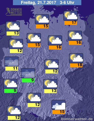 In der Nacht zu Freitag beruhigt sich das Wetter dann und Schauer und Gewitter klingen endgültig ab. Bis in die Morgenstunden klart der Himmel dann sogar weitestgehend auf.