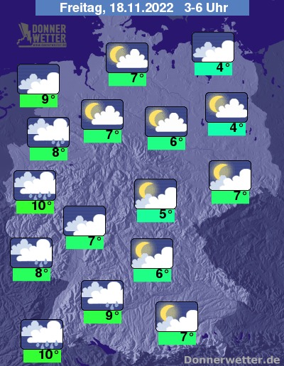 Am Freitag ist es größtenteils stark bewölkt oder bedeckt, nur teilweise kann es auch mal etwas auflockern. Es fällt zeitweise Regen bei Höchstwerten von 5 Grad in Neubrandenburg und bis 11 Grad an Rhein und Ems. An der Ostsee weht ein teils stürmischer Wind.