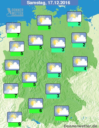 Am Samstag erwarten wir über dem Land häufig heitere und zum Teil sogar sonnige Abschnitte. Mehr Wolken, die jedoch größtenteils aufgelockert bleiben, ziehen über den Nordwesten Deutschlands und über das Ostseeumfeld hinweg, dabei bleibt es aber trocken. Die Temperatur steigt auf 2 Grad an der Oder und bis 9 Grad im Oberrheingraben.