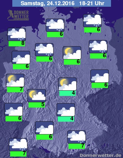 Heute Abend ist es über der breiten Landesmitte oft aufgelockert bewölkt und mehrheitlich trocken. Nördlich und südlich des breiten Streifens bleibt es hingegen bei der dichten Bewölkung und zeitweiligem Regen. Die Temperatur liegt zwischen 4 und 8 Grad. An Nord- und Ostsee weht ein teils stürmischer Wind.