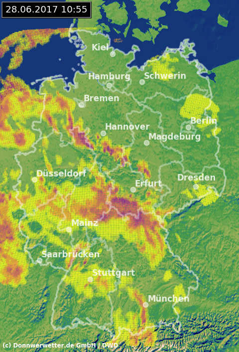 Aktuell vor allem Gewitter in den mittleren Landesteilen.