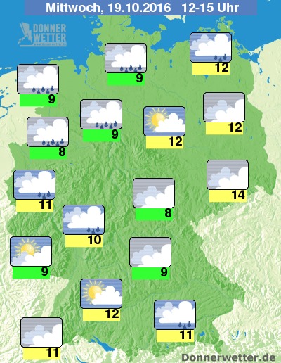 Die Temperaturen liegen zwischen 8 Grad C im Münsterland und 14 Grad C im Erzgebirge.