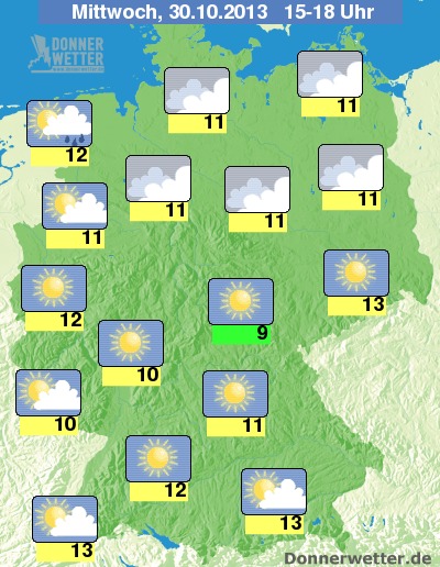Hoch Petra liegt über Mitteleuropa und versorgt uns mit trockener, aber nicht mehr ganz so warmer Luft. Ganz im Nordwesten von der Nordseeküste Niedersachsens bis nach Schleswig-Holsteins kann es Schauer geben und auch ganz im Südosten in der Südhälfte Bayerns kann es etwas regnen. Ansonsten bleibt es trocken und es kann sich in weiten Teilen gut die Sonne durchsetzen. Häufig werden 5 bis 7 Sonnenstunden erreicht.