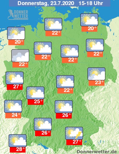 Am frühen Nachmittag trübt sich der Himmel im Nordseeumfeld ein und es kann tröpfeln. Im Alpenvorland entstehen in der schwülen Luftmasse mit kräftiger Sonneneinstrahlung mächtigere Quellwolken, welche lokale Gewittergüsse produzieren können. Im großen Rest unseres Landes gibt es meist eine freundliche Mischung aus Sonne und Wolken, teilweise strahlt die Sonne für längere Zeit vom leicht bewölkten Himmel.