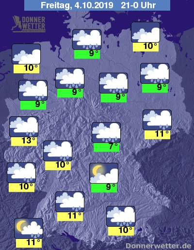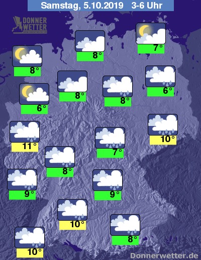Bis zu den Frühstunden kühlt die Luft auf 5 bis 11 Grad ab, am külhsten wird es dabei, wo sich mal die Sterne zeigen, am mildesten bleibt es wohl in den Ballungsgebieten des Westens.