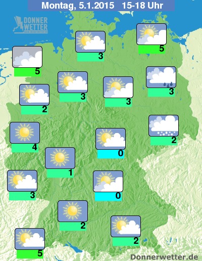 Heute Nachmittag halten sich vor allem im Osten und Südosten Deutschlands meist dichte Wolken, dabei fällt zeitweise Schnee oder Schneeregen, in Berlin-Brandenburg auch Regen, dazwischen kann es nur hin und wieder auch mal etwas auflockern. In den anderen Landesteilen ist es hingegen oft aufgelockert, zum Teil aber auch stark bewölkt, jedoch trocken. Besonders im Westen und Südwesten wird es oft sonnig. Die Temperatur liegt bei 0 Grad im Coburger Land und bis 5 Grad im Küstenumfeld.