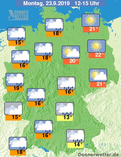 Am Nachmittag ziehen Richtung Osten einige, wenige Wolken auf. In der Westhäfte des Landes bleibt es zwar überwiegend bedeckt, aber ab und zu schafft es die Sonne durch die dichten Wolken. Regenschauer sind weiterhin möglich. Die Temperaturen liegen zwischen 13 Grad in Ingolstadt und 22 Grad in Berlin.