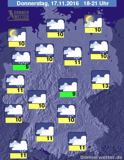 Auch am späten Nachmittag und in den Abendstunden bleibt das Regenrisiko im ganzen Land hoch. Dazu liegen die Höchstwerte in den kommenden Stunden bei milden 9 bis 13 Grad. Jedoch nehmen gegen Abend von Westen her die Windgeschwindigkeiten deutlich zu. Zwischen Nordsee und Schwarzwald ist mit Sturmböen, in den Höhenlagen auch mit schweren Sturmböen, zu rechnen.