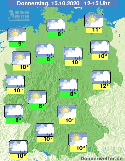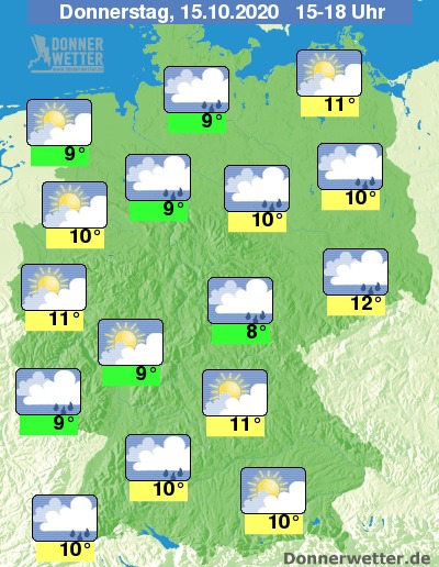 Bis zum frühen Abend ändert sich an der Wetter- und Temperaturverteilung nicht viel.